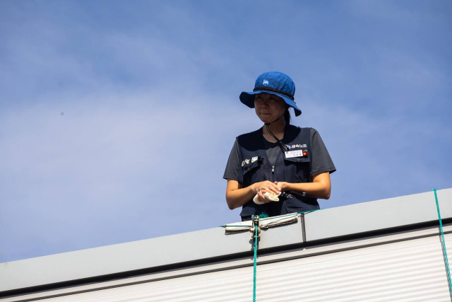 ▲경북 구미 한국옵티칼하이테크 공장 위에 올라 600일 간 고용승계를 요구하며 고공농성했던 박정혜 한국옵티칼지회 수석부지회장. ⓒ민주노총