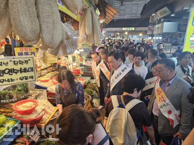 김선교 경기도당위원장을 비롯해 지역 당협위원장들과 도의원 및 시의원 등은 전통시장을 돌며 상인들을 격려하고, 추석 물가와 민생 현안을 살폈다.