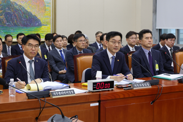 ▲윤 국무조정실장과 민기 국무총리비서실장이 13일 서울 국회에서 열린 정무위원회 국정감사에 참석해 있다. ⓒ연합뉴스