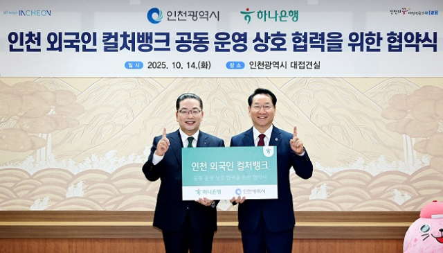 협약식은 이날 시청에서 진행됐으며, 협약에 따라 하나은행은 인천 남동산단금융센터 2층 유휴공간을 외국인주민을 위한 시설로 무상 제공하고, 인천시는 이를 활용해 생활 편의 증진과 지역사회 안정적 조기 정착을 위한 다양한 프로그램을 운영할 예정이다.