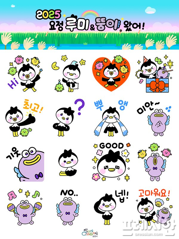 시 캐릭터 루미, 뚱이의 요정 버전을 활용했으며, 순천에 기반한 인스타툰 작가 '달고나'와 협업해 움직이는 이모티콘 16종으로 구성됐다.