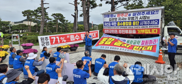 현장에는 약 150여 명의 완주군민이 동행해 대통령실 앞에서 통합 반대 의사를 밝혔다.