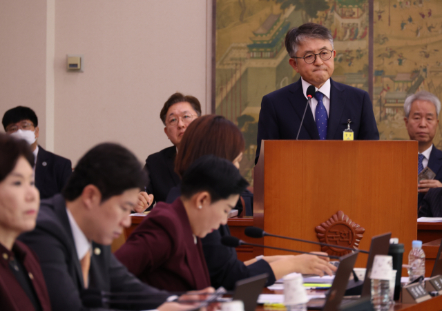 ▲이재필 국가유산청 궁능유적본부장이 16일 국회 문화체육관광위원회 국정감사에서 윤석열 정부 당시 대통령 영부인의 '종묘 차담회' 의혹과 관련한 질의를 듣고 있다. ⓒ연합뉴스