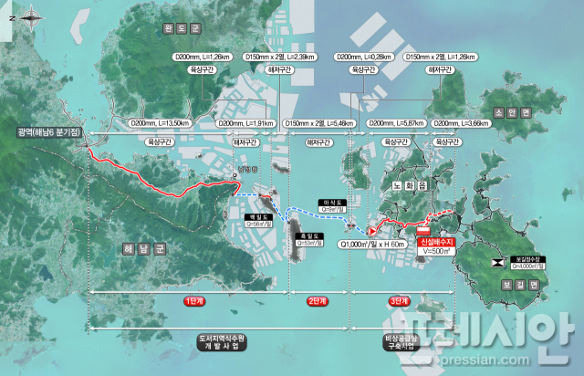 사업은 광역 상수도를 해남 분기점에서 노화읍까지 상수 관로 31.1㎞(육상 관로 21.9㎞, 해저 관로 9.2㎞), 배수지 1개소, 가압장 2개소 등 시설 용량 1000㎥/일의 시설을 설치한다.