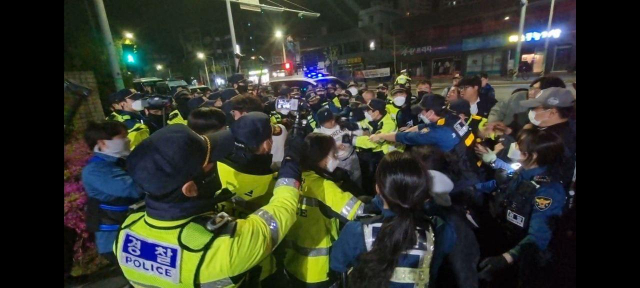 부당 해고와 징계가 가해진 이후에도 탄압은 이어졌다. 지난 15일, 사측은 집회 신고를 하지 않았다는 이유로 선전전을 진행하는 청소노동자를 경찰에 신고해 선전전을 방해했다. 사업장 내에서 선전전을 하는 것은 통상적인 노동조합 활동이자 노동자의 권리다. 따라서 자기 사업장 내의 선전전은 집회 신고 대상이 아니다. 또한 단체 협약에서 해고᛫징계 노동자의 자유로운 노동조합 사무실 출입을 보장하고 있다. 그럼에도불구하고 사측은 공장 정문에서 이들을 막고 철문을 닫았다.