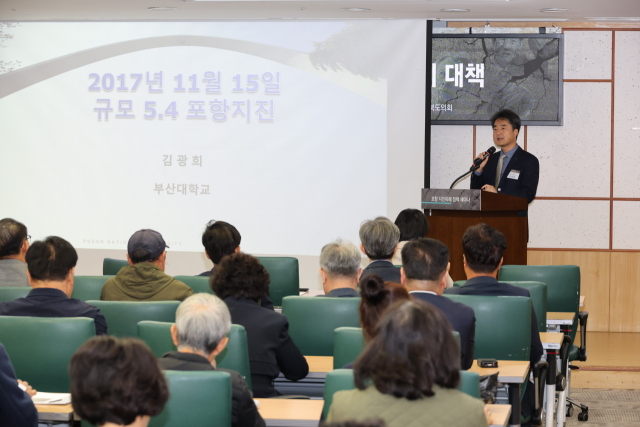 김광희 부산대 교수는 첫 발표에서 “2017년 포항지진은 지열발전 과정에서의 물 주입이 단층에 영향을 주며 발생한 촉발지진”이라며 과학적 원인을 분석했다.