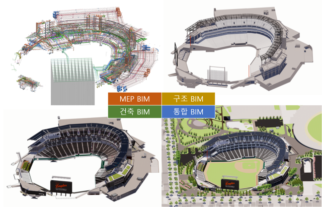 대전 한화생명 볼파크는 기술제안, 설계, 시공, 준공 등 전 과정에 BIM을 적용해 통합관리체계를 구축했으며 이를 통해 공사기간 단축과 시공품질 향상, 운영관리 효율성까지 확보해 높은 평가를 받았다.