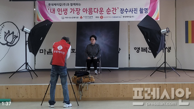 전날 진행된 행사는 노인들의 건강과 장수를 기원하기 위해 마련됐으며, 롯데케미칼㈜ 직원은 사진촬영 재능을 기부했다.
