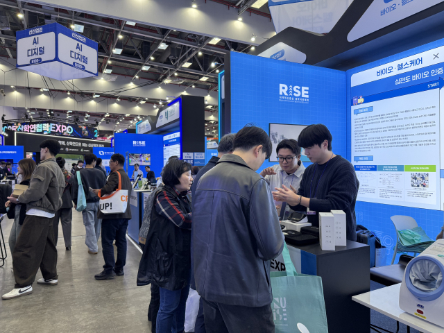 강원대학교 RISE사업단은 신산업관 ‘바이오·헬스케어’ 부문 전시에서 산학공동 기술개발과제 참여기업인 ㈜유스테이션(대표 백준호)과 함께 심전도 신호를 활용한 ‘심전도 바이오 인증 인공지능 기술’을 전시하고, 관람객에게 기술의 핵심 내용과 산학연협력의 가치를 직접 소개했다.