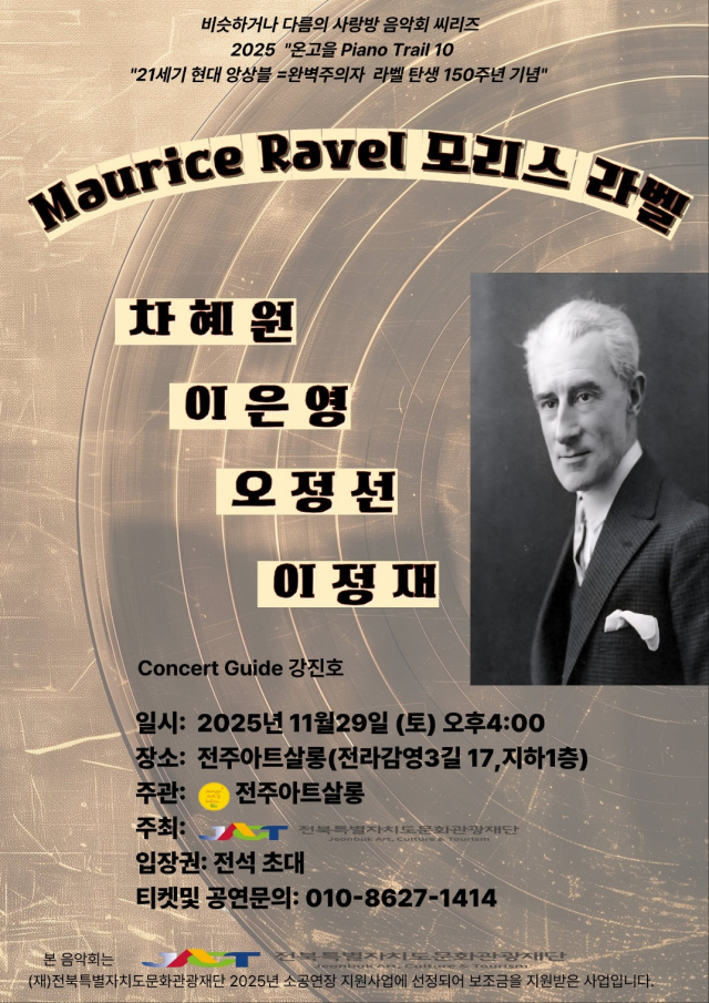 공연은 전석 초대, 무료 공연으로 진행되며, 자세한 사항은 전주아트살롱(010-6618-2151)으로 문의하면 된다.
