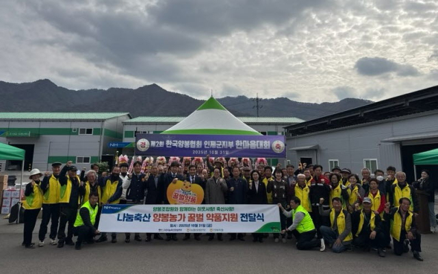 인제축협(조합장 조동환)은 (사)나눔축산운동본부와 협력해 31일 인제축협 벌꿀가공센터에서 2025년 인제군 양봉인 한마음대회 행사 개최를 기념해 인제군 관내 양봉농가를 대상으로 축산물 꿀벌 약품(꿀벌 응애 퇴치제 1000만원상당)을 전달하는 ‘나눔축산 어려운 양봉농가와 상생하는 꿀벌 약품 나눔 전달식’ 행사를 했다.