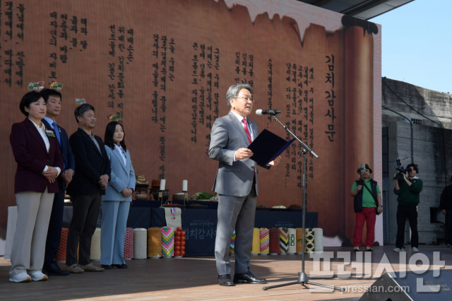 강기정 광주시장은 '김치감사문'을 낭독하며 김치를 빚어온 농민과 시민, 그리고 김치문화의 전통을 이어온 공동체의 노고에 감사를 전했다.