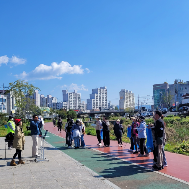 시민과 상인 등 200여 명이 참여해 시장 인근 조산천 2.6km 구간을 걸으며 쓰레기를 줍는 플로깅(Plogging) 활동을 진행했다.