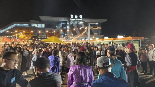 어쿠스틱 기타 선율과 함께 떡메치기 체험의 '쿵쿵' 소리가 어우러지며 정읍역 광장은 낮과 다른 낭만적인 분위기로 물들었다.