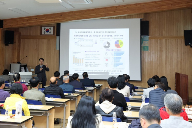 포럼은 무주군농업기술센터 농촌활력과 푸드플랜팀 박미향 팀장의 ‘지역 먹거리 정책 추진 상황 보고’를 시작으로, ‘지역 먹거리 계획의 이해’를 주제로 한 지역파트너플러스 정천섭 대표의 강의, 의성군의 ‘우수 지자체 사례 발표’ 등이 진행됐다.