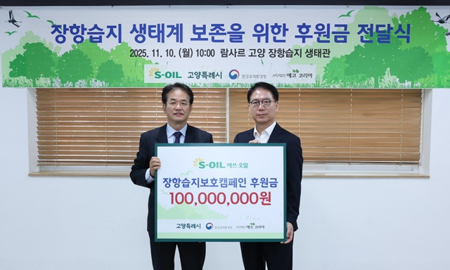 에쓰오일(S-OIL)이 장항습지 생태계 보전을 위한 후원금 1억원을 고양시에 전달했다.