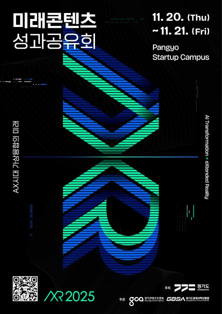경기도는 경기콘텐츠진흥원, 경기도경제과학진흥원과 함께 ‘2025년 경기도 가상융합산업 성과공유회(AXR)’를 오는 20~21일 이틀간 판교 스타트업 캠퍼스에서 개최한다.