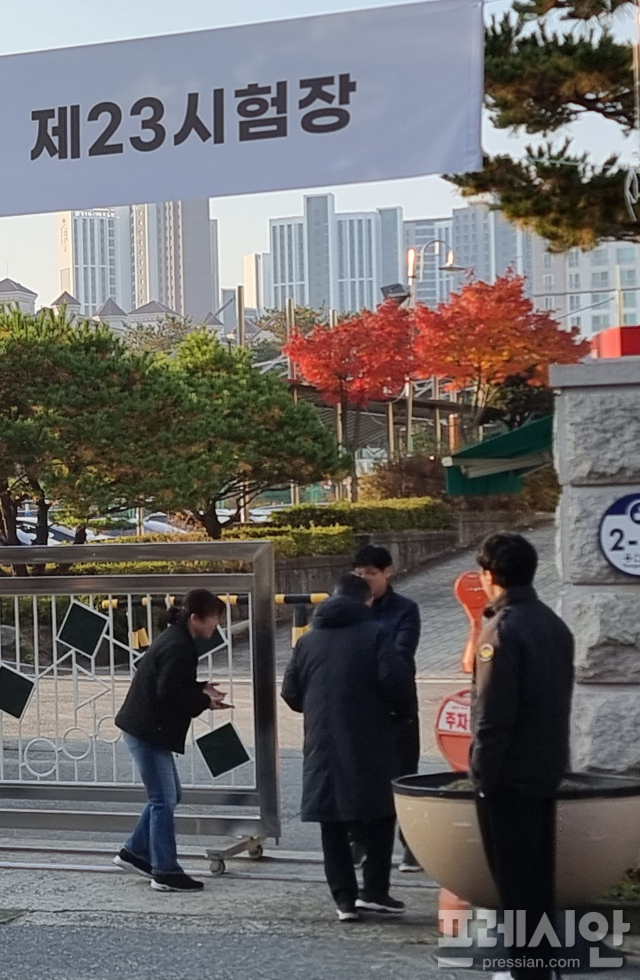 시계를 놓고 오거나 약을 챙기지 못한 수험생에게 학부모들이 급히 물품을 전달하는 모습도 눈에 띄었다.