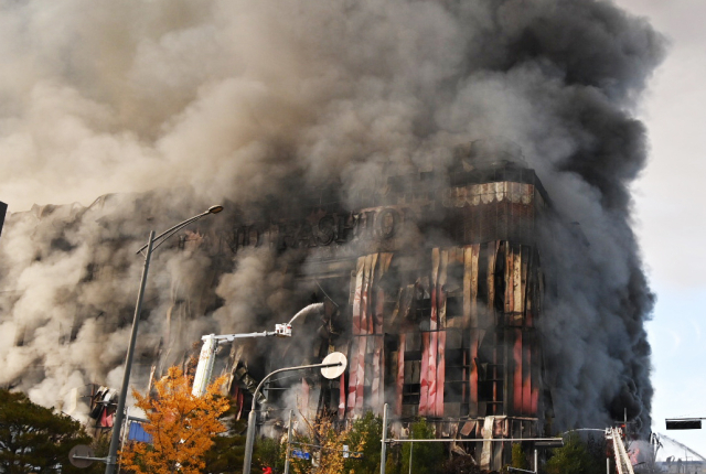 소방 당국에 따르면 골조가 강한 불길에 장시간 노출된 탓에 건물 일부분이 붕괴한 상태라 내부 진입이 불가능한 상황이다.