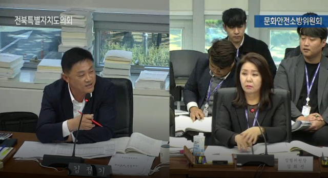 박정규 위원장은 특정 간부를 향해 "항간에는 (김관영 도)지사와 관계가 있다고 하는데 어떤 관계에 있느냐"고 직접적으로 물었고 당사자는 "그 전에 도청에서 근무했었다"고 답했다.