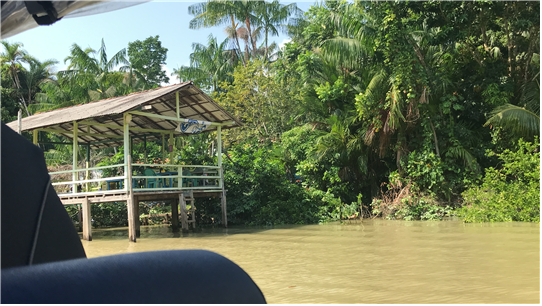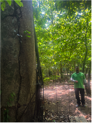 콤보섬의 또 다른 주요 자원은 고무나무(Seringueira)다. 한때 고무 붐 시기에는 외부 자본이 대거 들어와 무리한 채취로 나무껍질이 깊이 손상됐다. 그때 남겨진 상처들이 아직도 나무의 표면에 남아 있다. 지금은 그 방식을 멈추고, 천천히, 자연의 속도에 맞춰 수액을 채취한다.