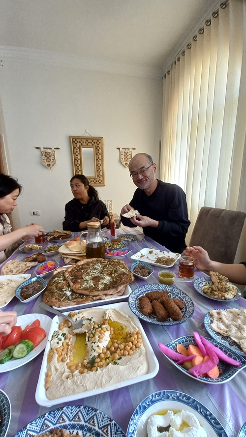 식사는 푸짐했다. 나는 전에는 이곳을 아라비안나이트 속 사하라사막의 모험담이나 멀고먼 '열사의 땅'에서 노고가 많은 사우디건설노동자를 위로하는 가요무대 사회자 멘트 속의 얘기로만 들었다. 그런 내 눈앞에 푸짐한 음식들이 보란 듯이 놓였다. 쌀, 빵, 올리브, 토마토, 오이, 당근, 양파처럼 우리에게 익숙한 채소들이 주된 식재료다. 오렌지 같은 감귤류는 정말 흔하고 달콤하다. 팔레스타인은 '레반트의 식량 바구니'라는 말이 있을 정도로 풍요로운 농업의 땅이다. 함께 어울려 살던 유목민들의 전통 때문인지는 몰라도 양고기, 닭고기도 푸짐했다.