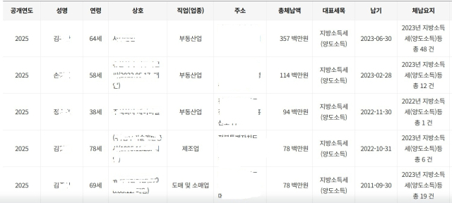 공개대상자는 ‘지방세징수법’ 제11조 및 ‘지방행정제재·부과금의 징수 등에 관한 법률’ 제7조의3에 근거해 선정됐다.