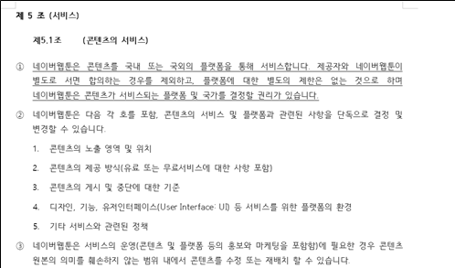 웹툰창작노동자 역시 플랫폼의 요구에 맞춰야 한다. 장르를 바꿔라, 대사를 고쳐라, 심지어 캐릭터 옷의 줄무늬가 마음에 안 든다는 둥 수정 지시가 난무한다. 유급 휴재가 없는 것은 당연하고 무급 휴재조차 마음대로 할 수 없다. 마감시간에 대한 온갖 페널티는 사용자의 지휘·감독 그 자체다. 하지만 플랫폼은 이를 그저 '의견 제시'라고 포장한다.