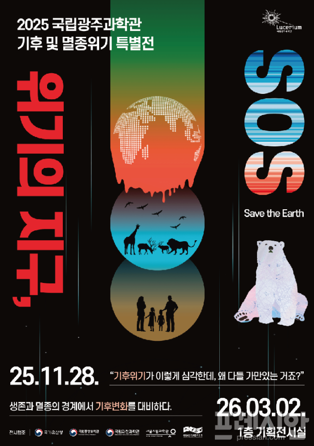 국립광주과학관이 오는 28일부터 2026년 3월 2일까지 기획전시실에서 기후 및 멸종위기 특별전 '위기의 지구, SOS'를 개최한다.