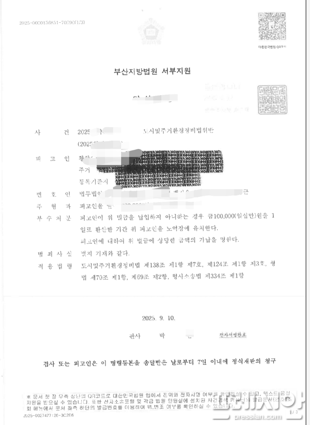 이와 관련해 11월 <프레시안>이 확보한 유서·판결문·내부 문건을 종합하면 J씨는 조합 운영과정에서 장기간의 압박과 갈등을 받아온 정황이 보다 구체적으로 드러난다. 유서에는 개인적 고통뿐 아니라 갈등의 대상이 된 인물들이 실명으로 적혀 있었고 당시 조합이 이용한 정비업체인 'G도시정비시스템'의 명함에는 수영지역 P조합장이 고문으로 기재돼 있었다. 이러한 정황들은 정비업체와 일부 조합장, 그리고 '재개발협회'로 불리는 외부조직 사이에 일정한 영향력 관계가 형성돼 있었을 가능성을 시사한다.