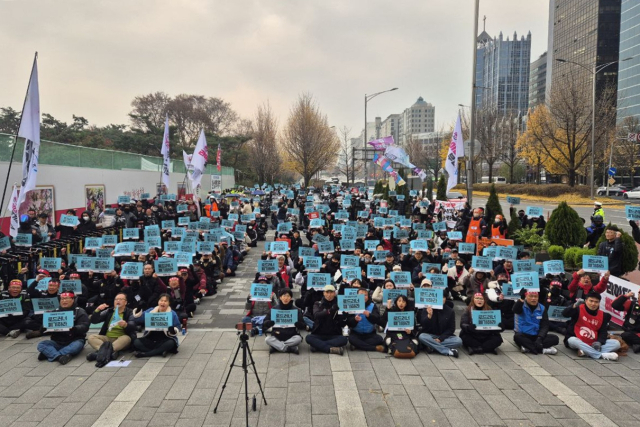 지난 11월 25일, '로드러너 도입저지 공동투쟁'에는 100여 명의 지방 배달노동자가 오토바이를 뒤로 하고 현장에 참여했다. 전국에서 모인 1000여 명의 배달노동자, 상점주, 시민들은 함께 외쳤다.