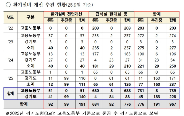 특히 지난 2022년부터 고용노동부 기준으로 개선한 739개 교에 대해서도 2030~2033년까지 경기도형으로 보완할 예정이다.