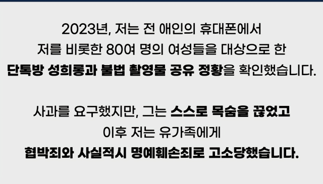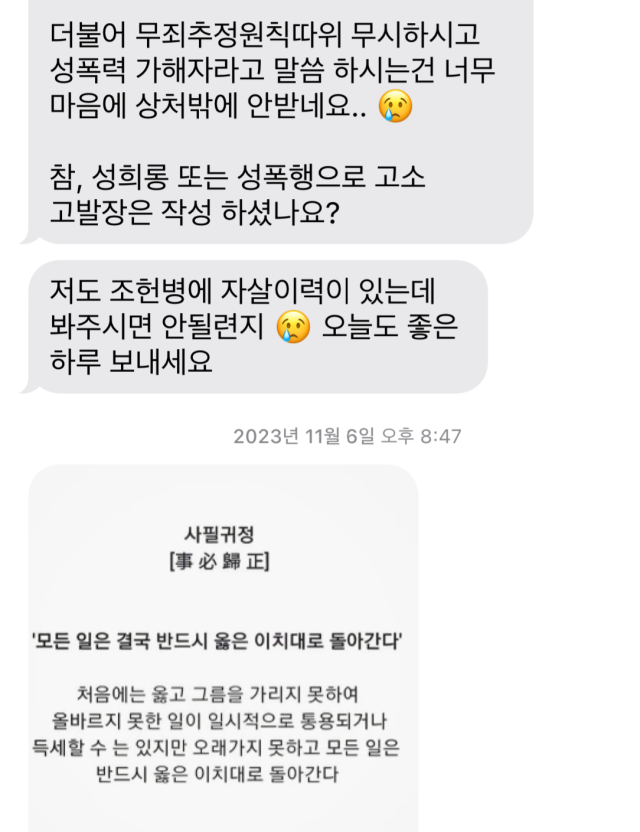 저의 삶이 더 이상 왜곡된 주장에 흔들리지 않기를, 그리고 이 사건이 진실과 인간의 존엄을 지키는 방향으로 마무리되기를 간절히 바랍니다.