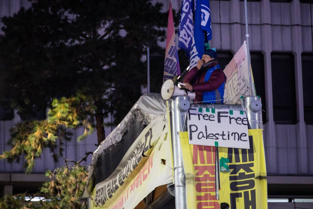 어느덧 300일이 된 그의 고공농성을 맞아 '세종호텔 정리해고 철회를 위한 공동대책위원회'가 연 투쟁 문화제가 그곳에서 진행되고 있었다. 무대 위에서 연대 시민들은 고 지부장의 바람이 이뤄져 하루 빨리 땅에서 그를 만나길 바라는 마음을 담은 발언을 이어갔다.
