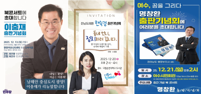 내년 지방선거에 뜻을 둔 전남 동부권 기초단체장 후보군들이 잇따라 출판기념회 행사를 준비하며 본격 선거전에 돌입하는 모습이다.