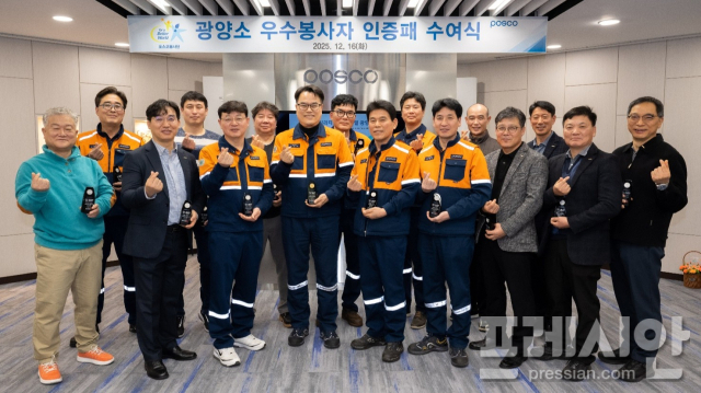 광양제철소(소장 고재윤)는 '3000 시간 이상 우수봉사자 인증패 수여식'을 열어 지역 사회에 헌신적으로 봉사한 우수봉사자들을 격려했다고 17일 밝혔다.