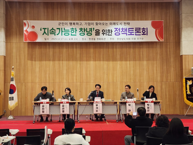 우기수 경상남도의회 의원(국민의힘·창녕2)은 17일 오후 창녕군 창녕읍 경화회관에서 '지속가능한 창녕을 위한 정책토론회'를 개최하고 '지속가능한 창녕, 군민이 머물고 기업이 찾아오는 미래도시 전략'을 주제로 5대 핵심 전략을 발표했다.