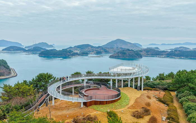 새롭게 태어난 달아전망대는 기존 전망데크보다 높이를 높여 시야 방해없이 사량도와 욕지도, 남해 등을 두루 조망할 수 있게 했다. 보행이 불편한 관람객들도 쉽게 접근할 수 있도록 설계됐다.