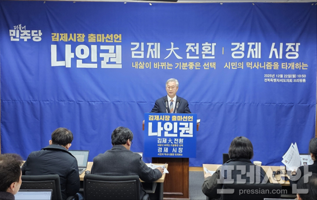 나인권 전북특별자치도의원(김제1)이 22일 도의회 브리핑룸에서 기자회견을 열고 “시민의 먹고 사는 문제부터 해결하는 ‘경제시장’으로 김제 대전환의 길을 열겠다”며 제9대 김제시장 선거 출마를 공식 선언했다.