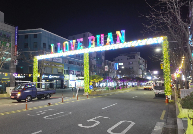 전북 부안군이 주요 도로에 반짝이는 야간 조명이 불을 밝히며 새로운 희망을 기원했다.