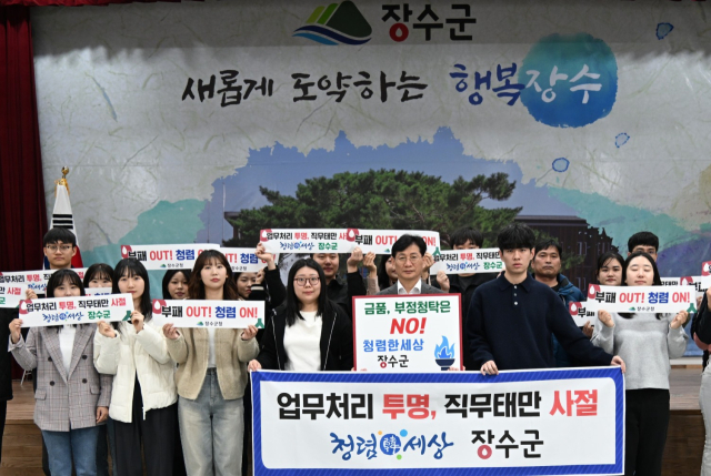 장수군이 전날 전북 공공기관 중 유일하게 '종합청렴도 평가'에서 최상위 등급을 받는 등 '공직사회 청렴 역사'를 새롭게 썼다는 축하였다.