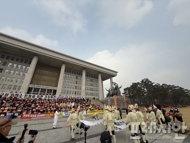 경북 초대형 산불 피해 주민들이 29일 서울 여의도 국회 본청 앞 계단에서 기자회견을 열고, 산불 진상규명과 국정조사 실시, 특별법 시행령 전면 개정을 강력히 촉구했다.