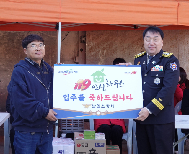 이날 입주식에는 전북소방본부와 남원소방서를 비롯해 전북사회복지공동모금회, 남원시노인복지관, 주천면 행정복지센터, 남·여 의용소방대, 마을 이장 등 관계자들이 참석해 입주선물 전달, 입주자 감사인사, 기념촬영 등이 진행됐다. 기초소방시설과 생필품 등 입주 선물도 전달됐다.