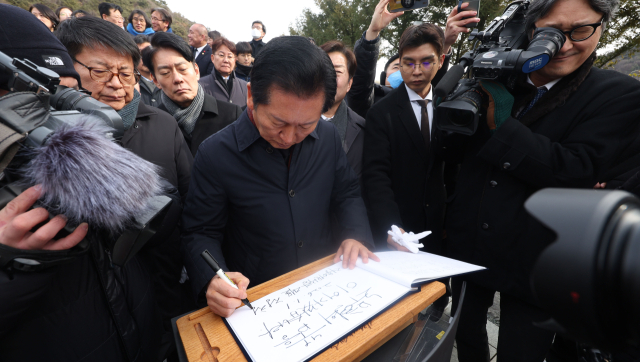 한편 정 대표는 노 전 대통령 묘역 참배 후 방명록에 "노무현의 꿈을 이어가겠습니다"라고 적었다.