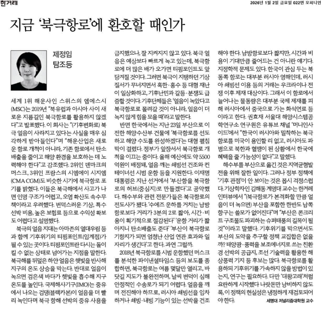 북극항로는 기술적 통로이기 이전에 정치적 통로다. 이재명 정부의 '실용 외교'가 시험대에 오르는 지점이기도 하다.