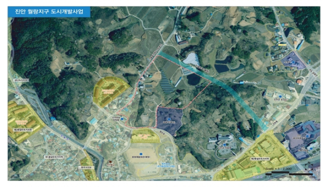 '월랑지구 도시개발사업'은 진안읍 군상리 선거관리위원회 북측에서 목골 방면 일원 7만3,867㎡ 부지에 주거시설과 공원·녹지 등 도시기반시설을 체계적으로 조성하는 사업이다.