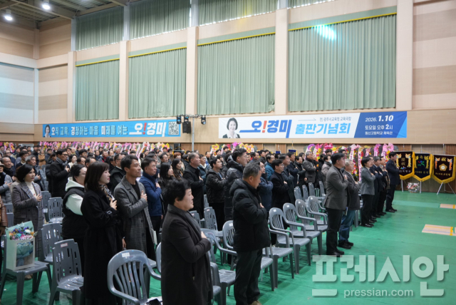 광주광역시교육감 출마를 선언한 오경미 전 광주시교육청 교육국장의 출판기념회가 10일 오후 광주 동신고 체육관에서 3000여 명의 인파가 몰린 가운데 성황리에 열렸다.
