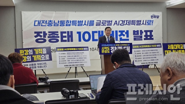 장 의원은 12일 충남도청에서 기자회견을 열고 '글로벌 AI 경제특별시 10대 비전'을 발표했다.