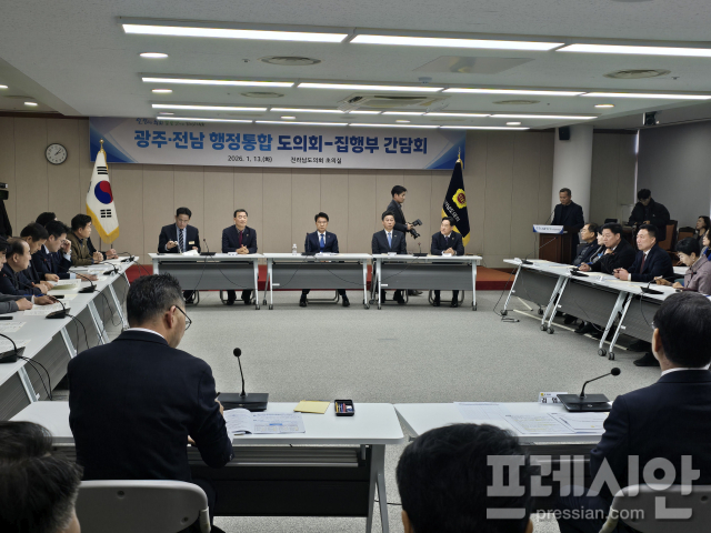 13일 오후 2시 전남도의회 초의실에서는 전남도 주최로 광주전남 행정통합 도의회-집행부 간담회가 열렸다.