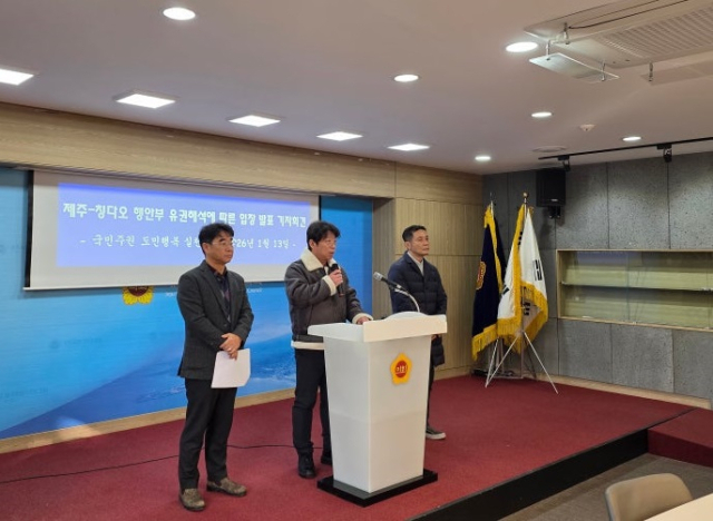 더불어민주당 당원모임인 '국민주권 도민행복 실천본부(이하 실천본부)'는 13일 오전 제주도의회 도민카페에서 칭다오 협정에 대한 행정안전부의 유권해석 결과를 발표했다.